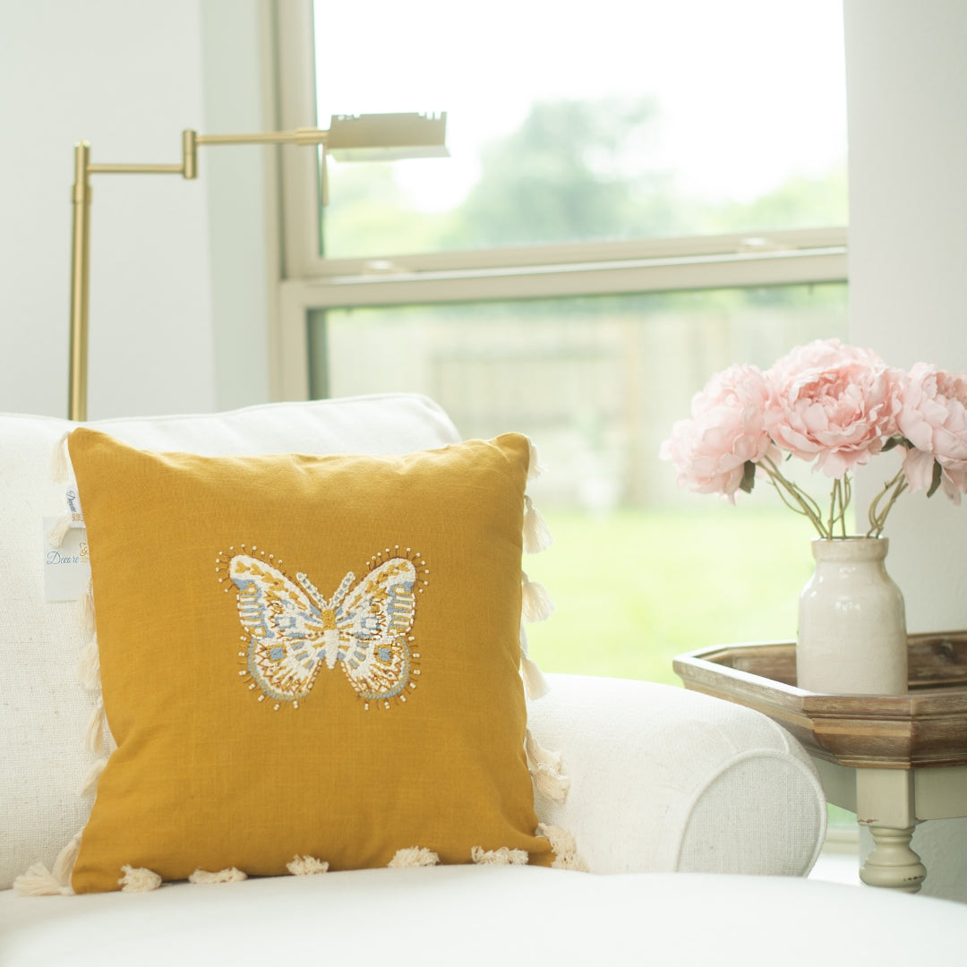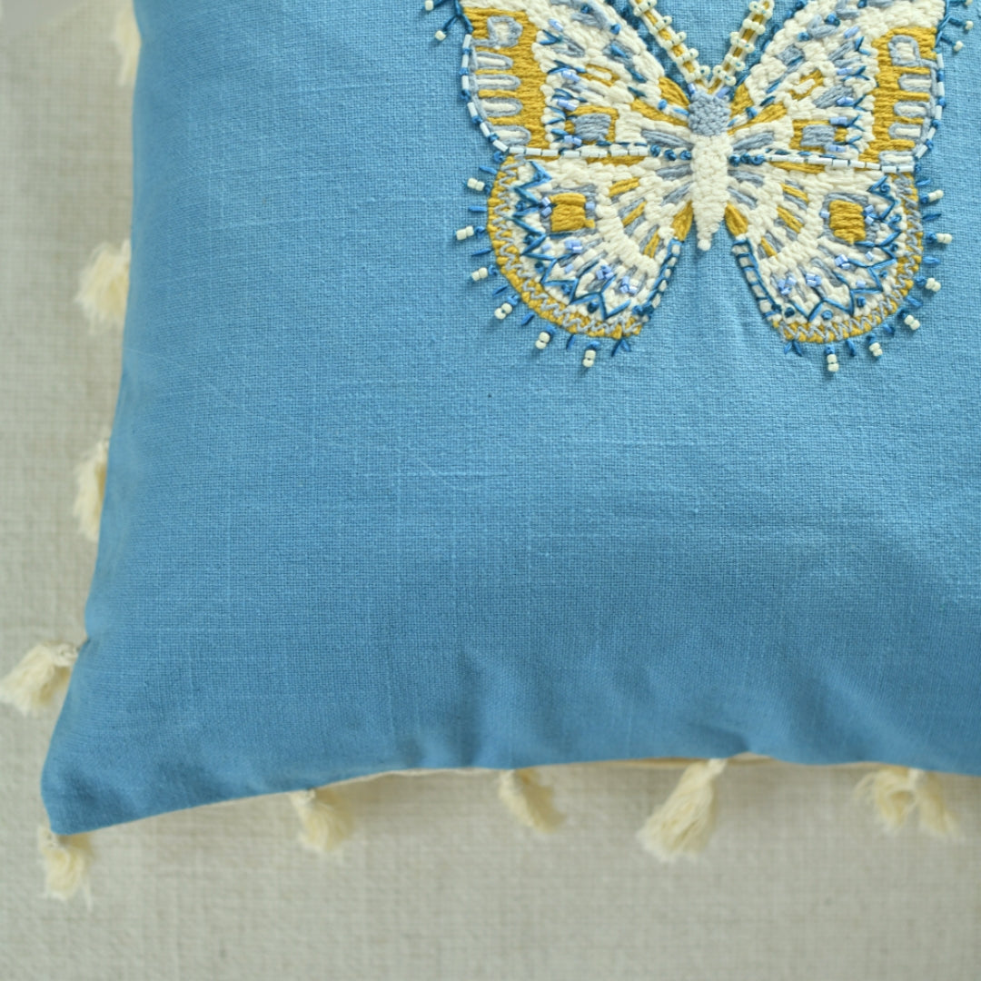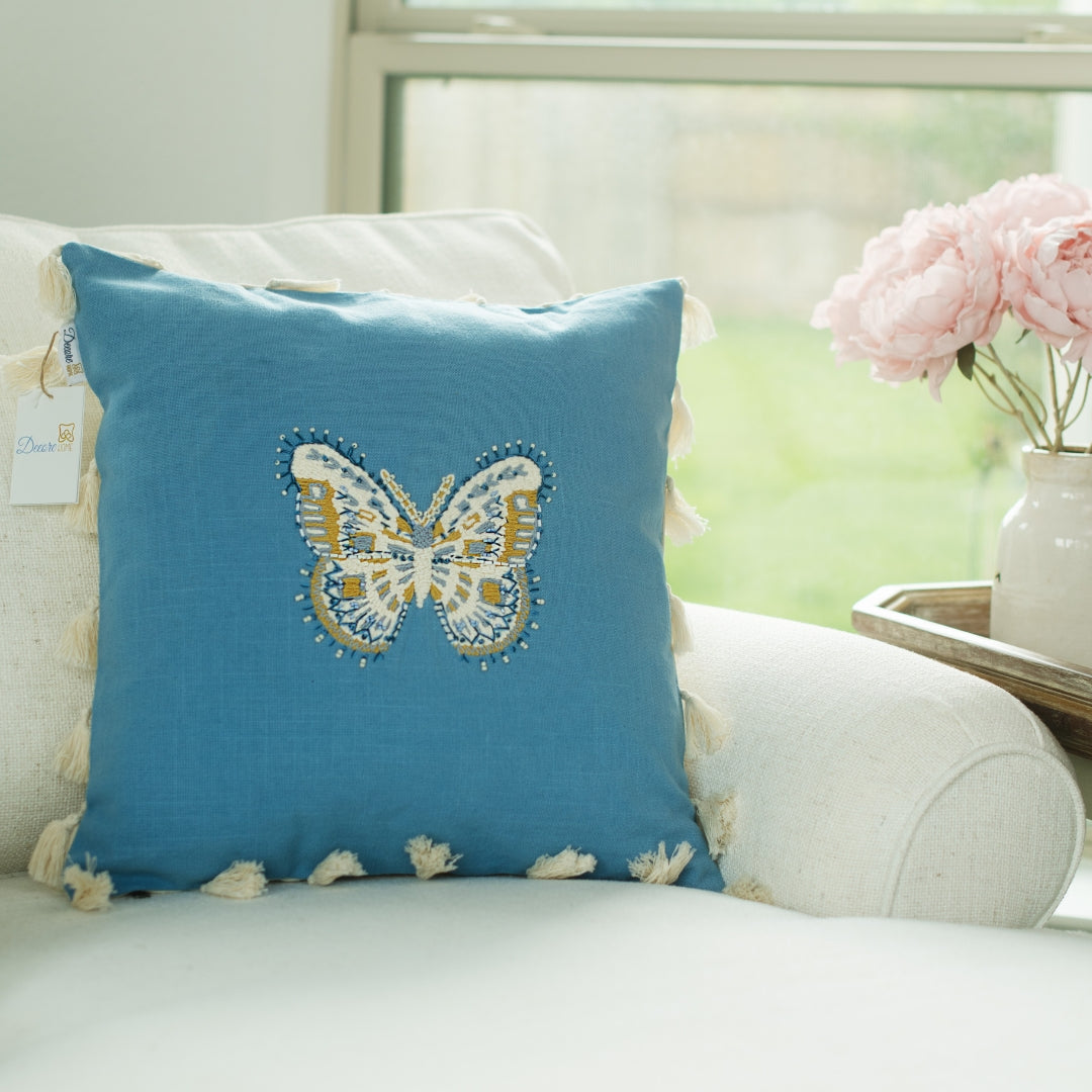 Enchant your living space with an embroidered Mariposa Cushion Cover. Meticulously crafted, these covers exude elegance and charm. Made from premium materials for comfort and style. Elevate your decor with the beauty of fluttering wings. Shop now and let your home take flight.